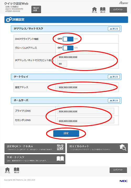 ネームサーバを設定する 中継機 子機としてご使用のとき Aterm Wg2600hp3 ユーザーズマニュアル