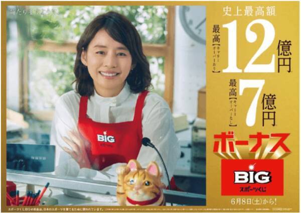 日本くじ史上最高 1等12億円の ボーナスbig 販売にあわせbigの新cmキャラクターに石田ゆり子さんが就任 6月6日 木 ボーナスbig 発売直前イベントにダチョウ倶楽部さんが登場 2019年5月28日 エキサイトニュース